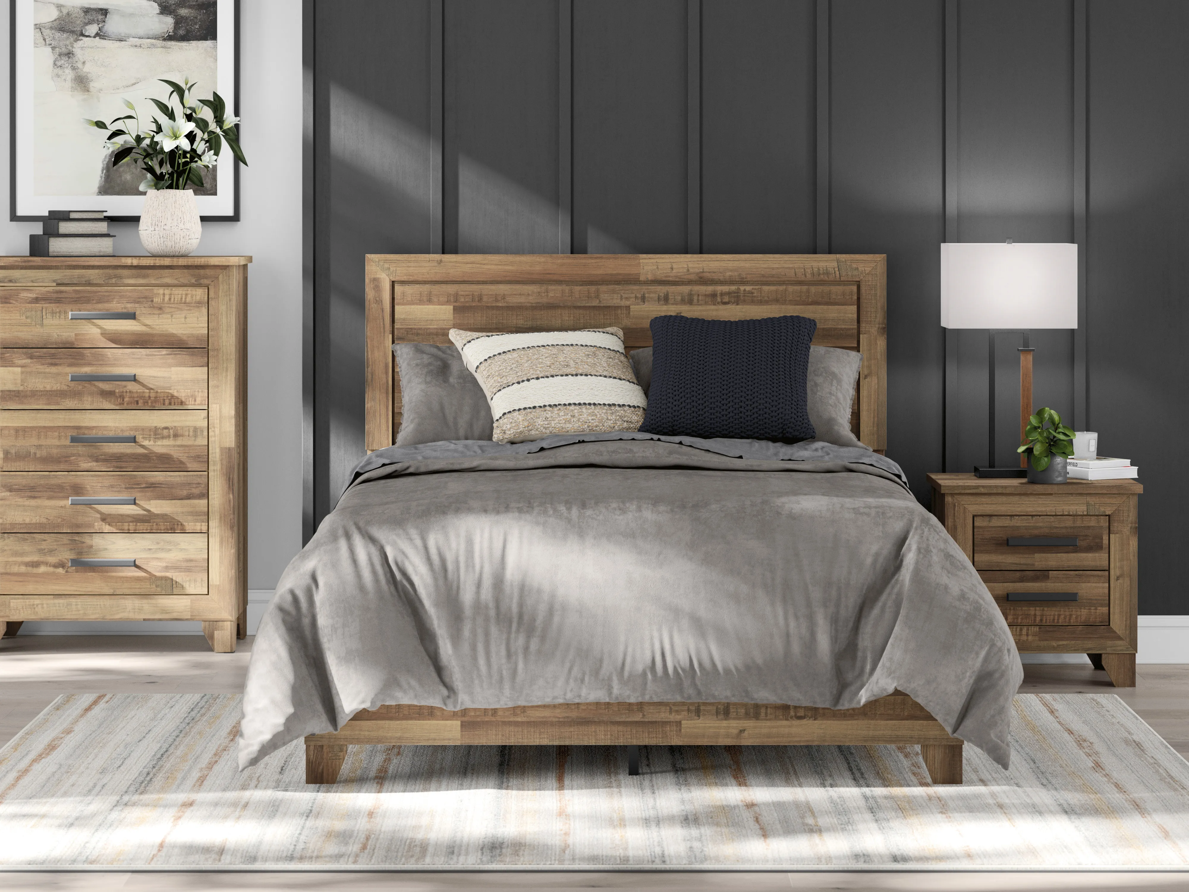 Bring balance, warmth, and timeless style to your space with the Finaria 5-Piece Queen Bedroom Set. Designed with clean lines and a rich, natural finish that highlights subtle grain textures, this thoughtfully curated set blends modern simplicity with everyday functionality.