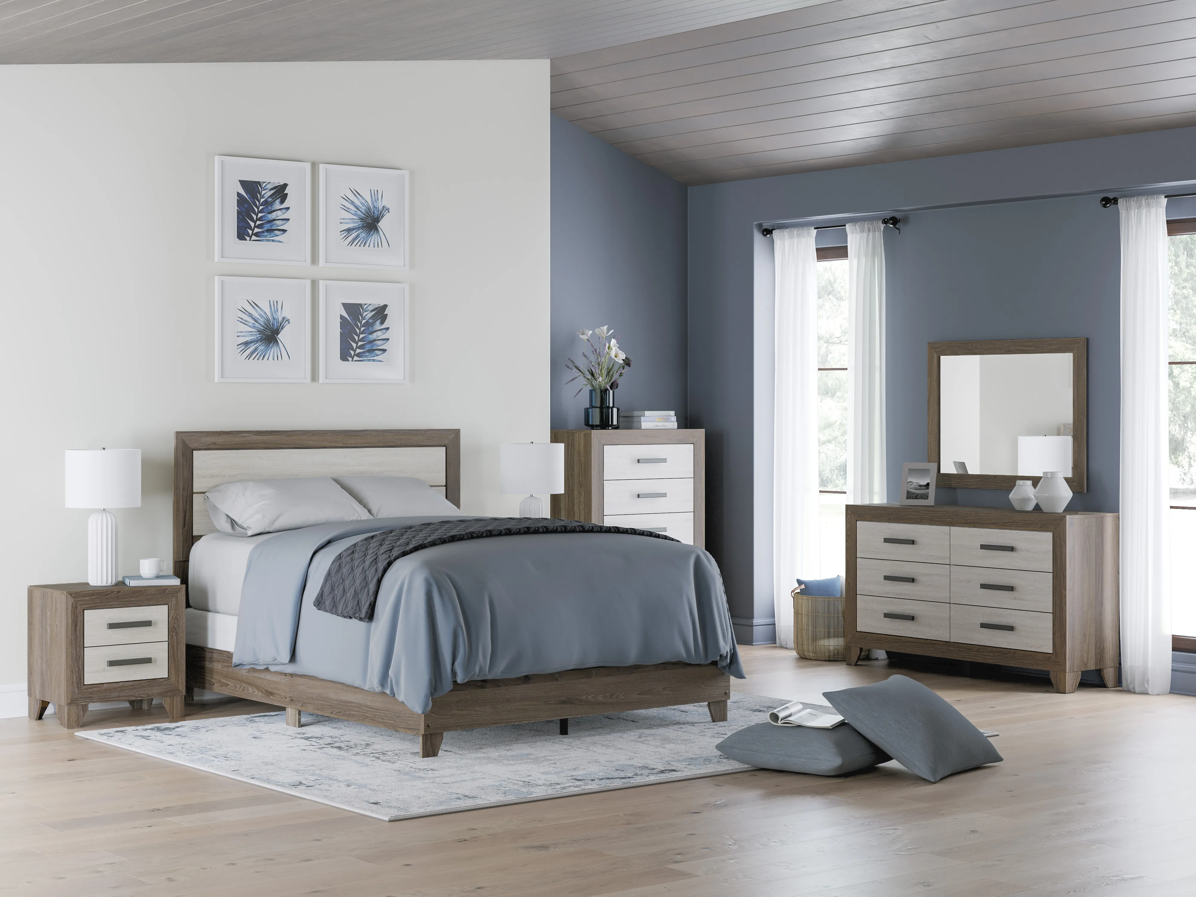 With its sleek profile, two-tone palette, and thoughtfully integrated storage, the Sharnari Bedroom Set transforms any room into a stylish, well-organized retreat.