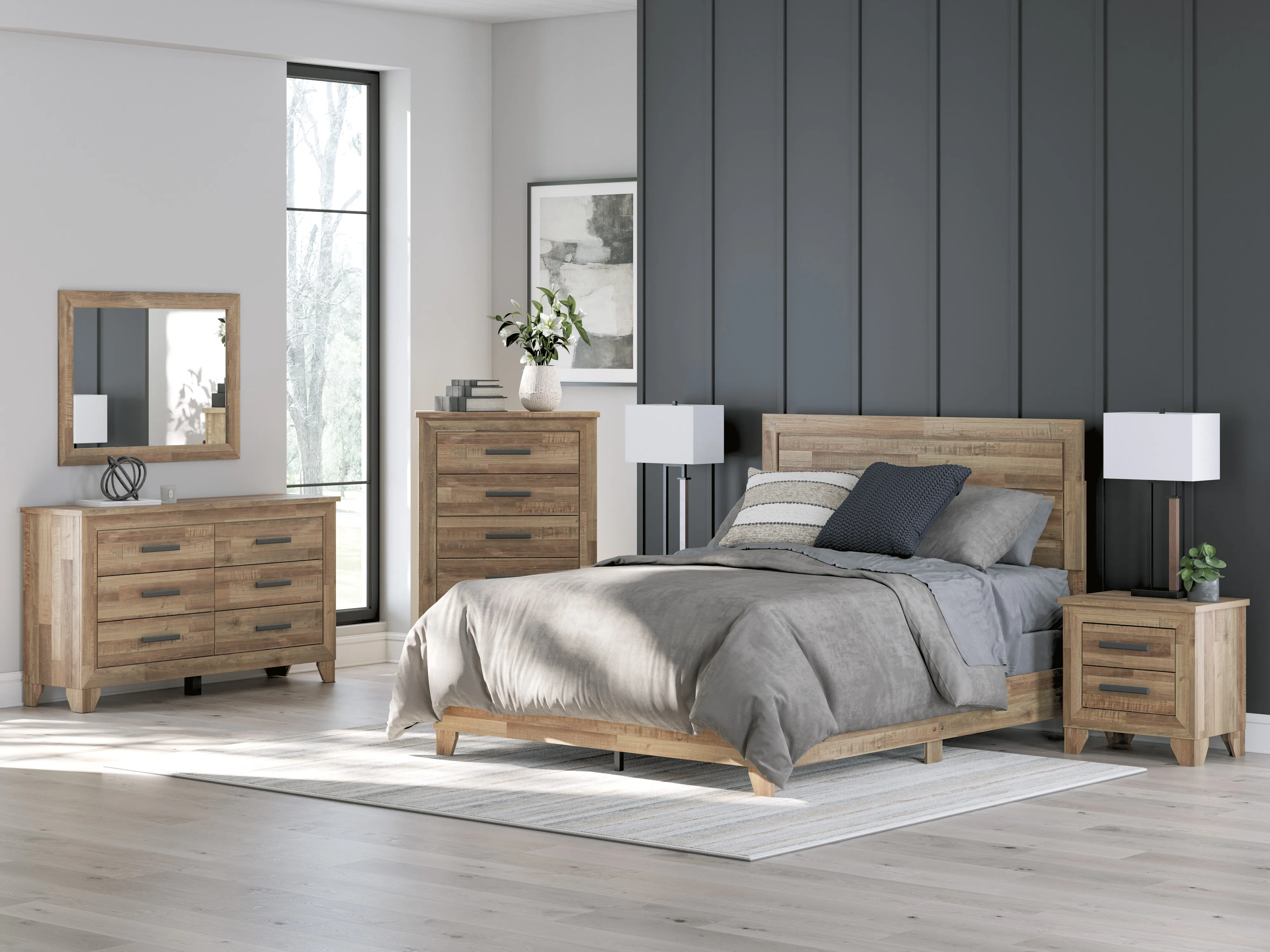Bring balance, warmth, and timeless style to your space with the Finaria 5-Piece Queen Bedroom Set. Designed with clean lines and a rich, natural finish that highlights subtle grain textures, this thoughtfully curated set blends modern simplicity with everyday functionality.
