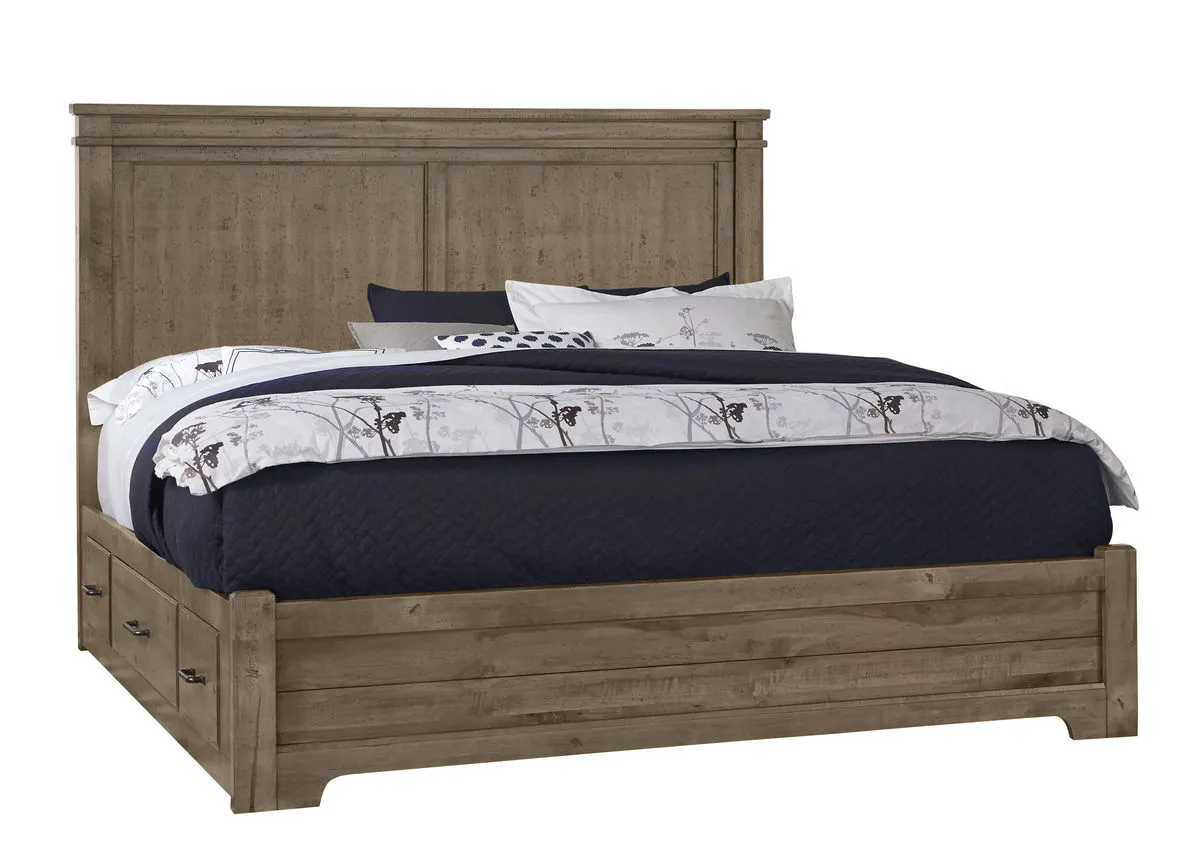 Classic raised panels on the headboard and footboard give the Mansion Bed a look that shows off its heritage while easily fitting in within any decor. Three drawers one the side of the bed offer up plenty of easily accessible storage for extra pillows and blankets or even clothing. Crafted from solid maple; it is a great centerpiece for your bedroom.
