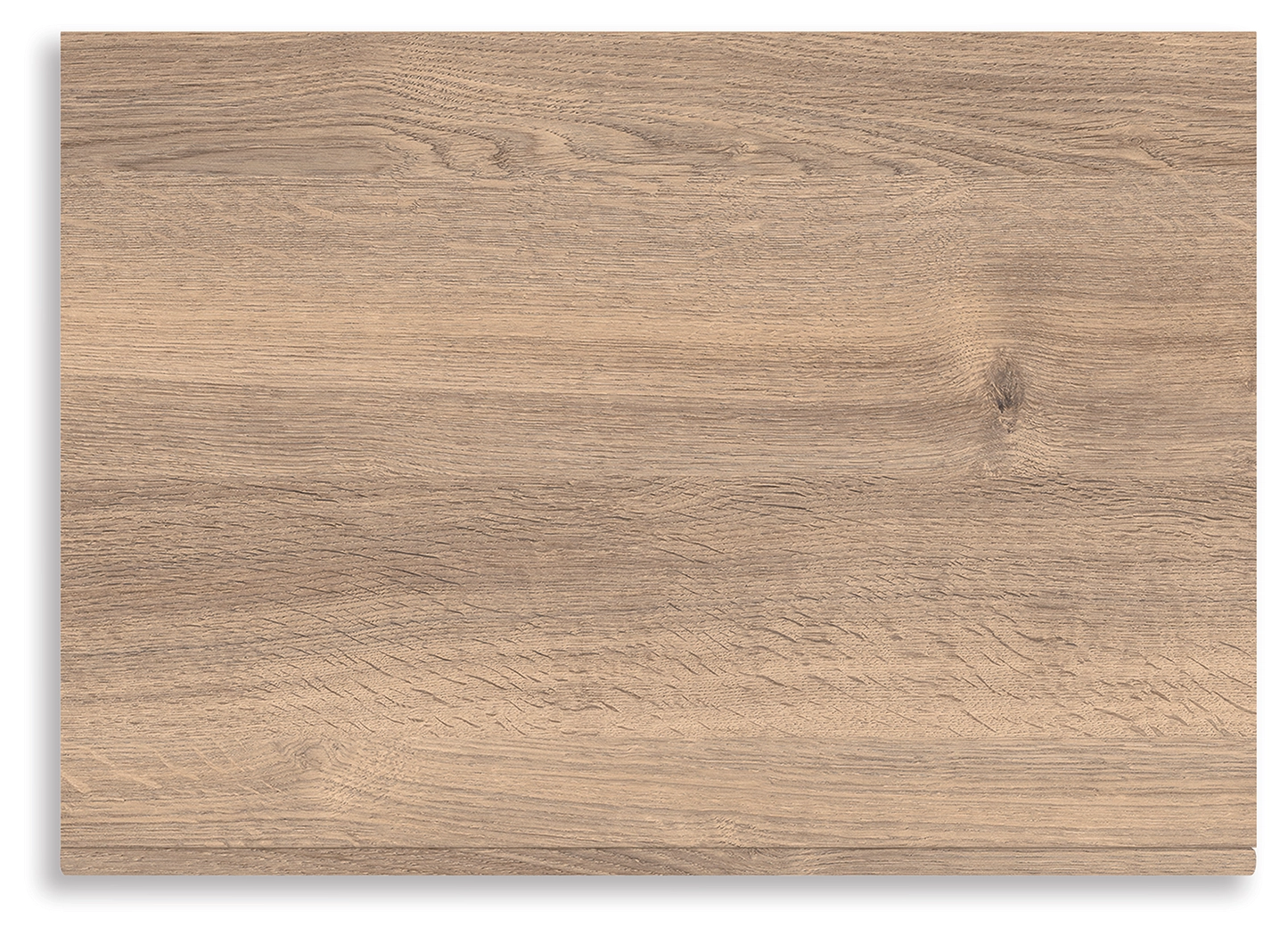 Drawer interior is lined with a faux linen laminate for a clean, finished look