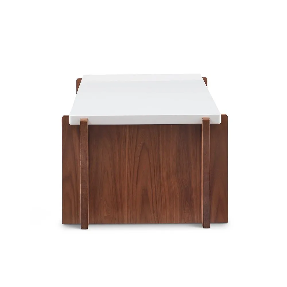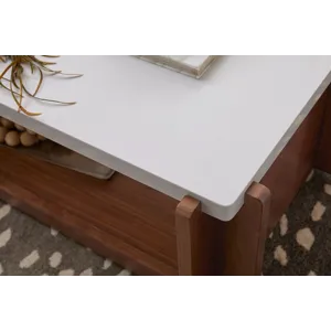 We learned from the best. Our Lincoln coffee table takes inspiration from influential architect Frank Lloyd Wright, to bring timeless style to the present. Heirloom quality that can stand up to the everyday, this coffee table is crafted from durable materials and equipped with casters for smooth moving throughout the home. Designed for elegance and utility, this coffee table has an open compartment that can be used for storage. Iconic style, in an essential piece. Lincoln has everything you need.