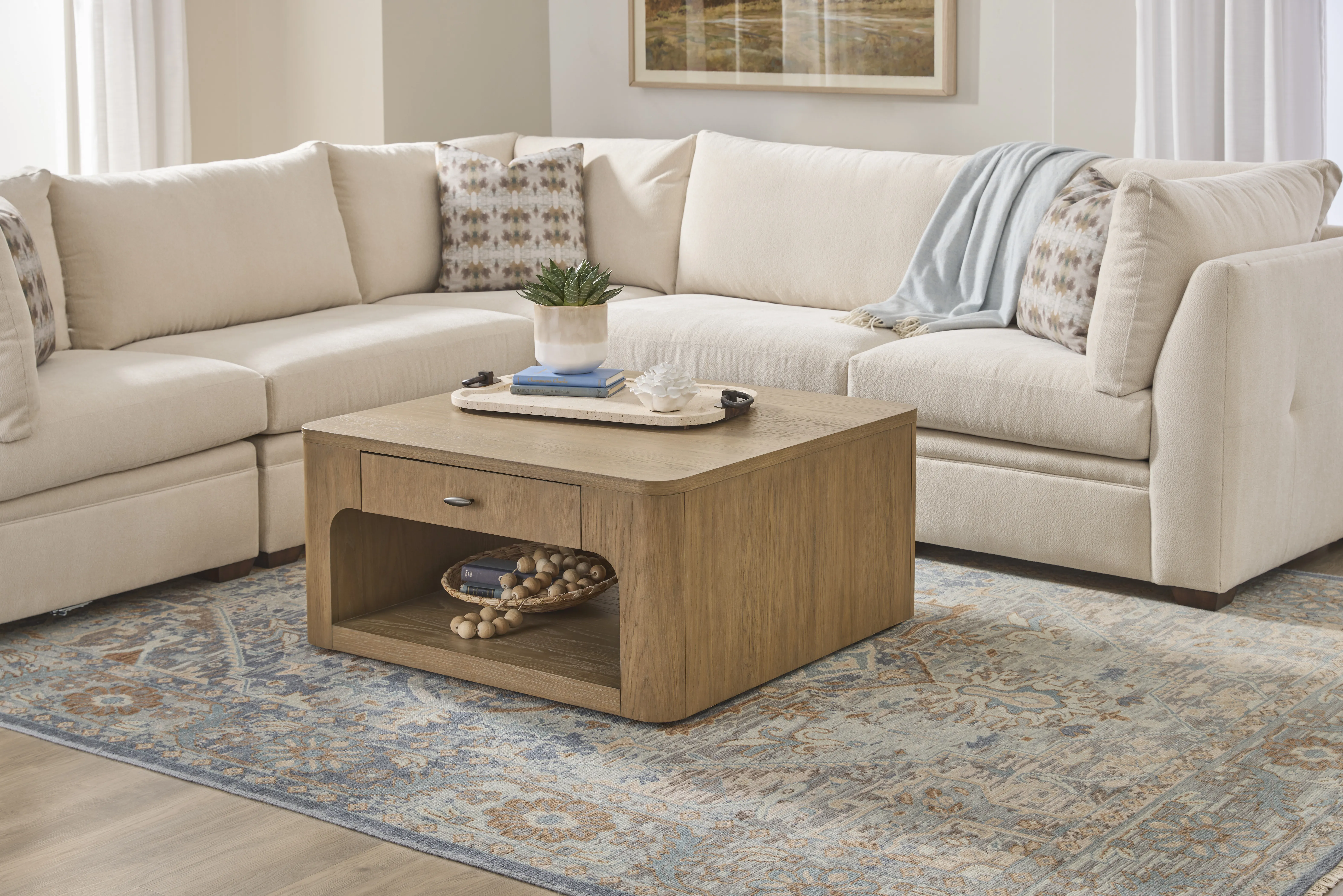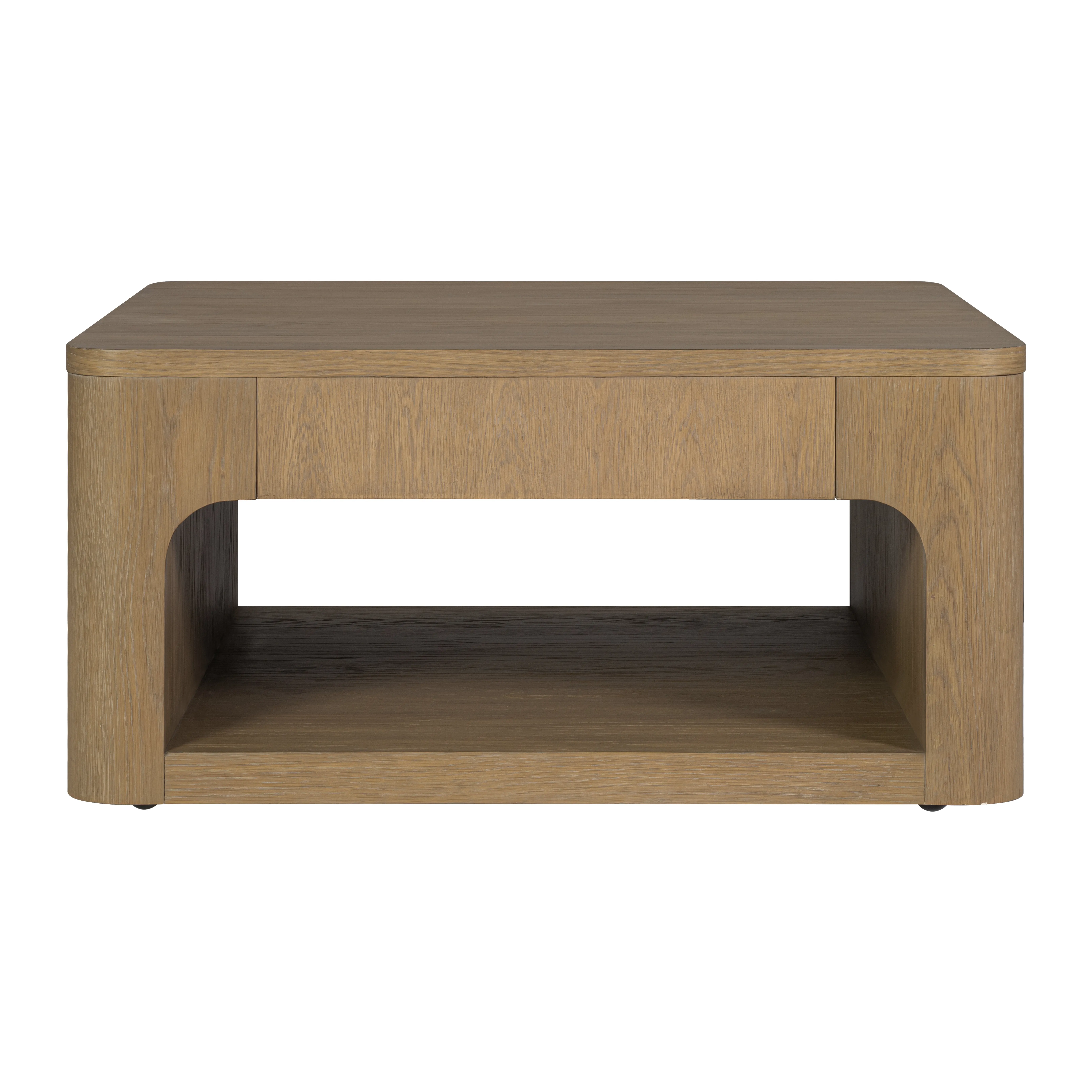 Simple geometry creates a look of timeless elegance for your living space with the Normandy square coffee table. Inspired by European architecture, this coffee table offers a minimalist silhouette featuring an inviting, warm driftwood finish. Designed for both style and functionality, it includes a convenient storage drawer to keep your essentials organized. Crafted with sustainability in mind, this Normandy coffee table is comprised of FSC-certified wood with a scratch-resistant finish for added durability. Standing on a dignified, strong frame, this piece is sure to be a conversation starter.