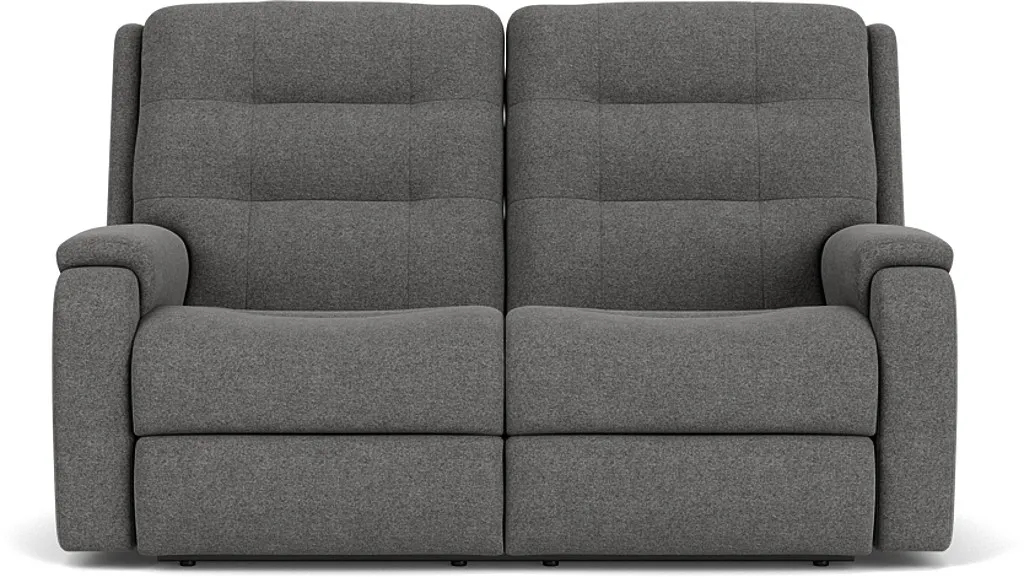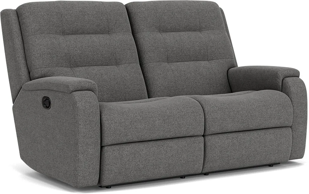 Enjoy ample back support with the Arlo Reclining Loveseat, which features a distinctive pull-tufted, triple-divide back that bolsters your head, neck and lower back. Additional ergonomic features include rounded, pad-over track arms that take pressure off your forearms while offering a refined aesthetic. Using the handle on either of the arms, you can kick back and relax while sitting next to a loved one. The contoured seat is reinforced by our patented DualFlex Spring System™, which ensures a pleasing mix of firmness and flexibility as you sit. Available in durable, cleanable high-performance fabrics, this loveseat is perfect for active families.