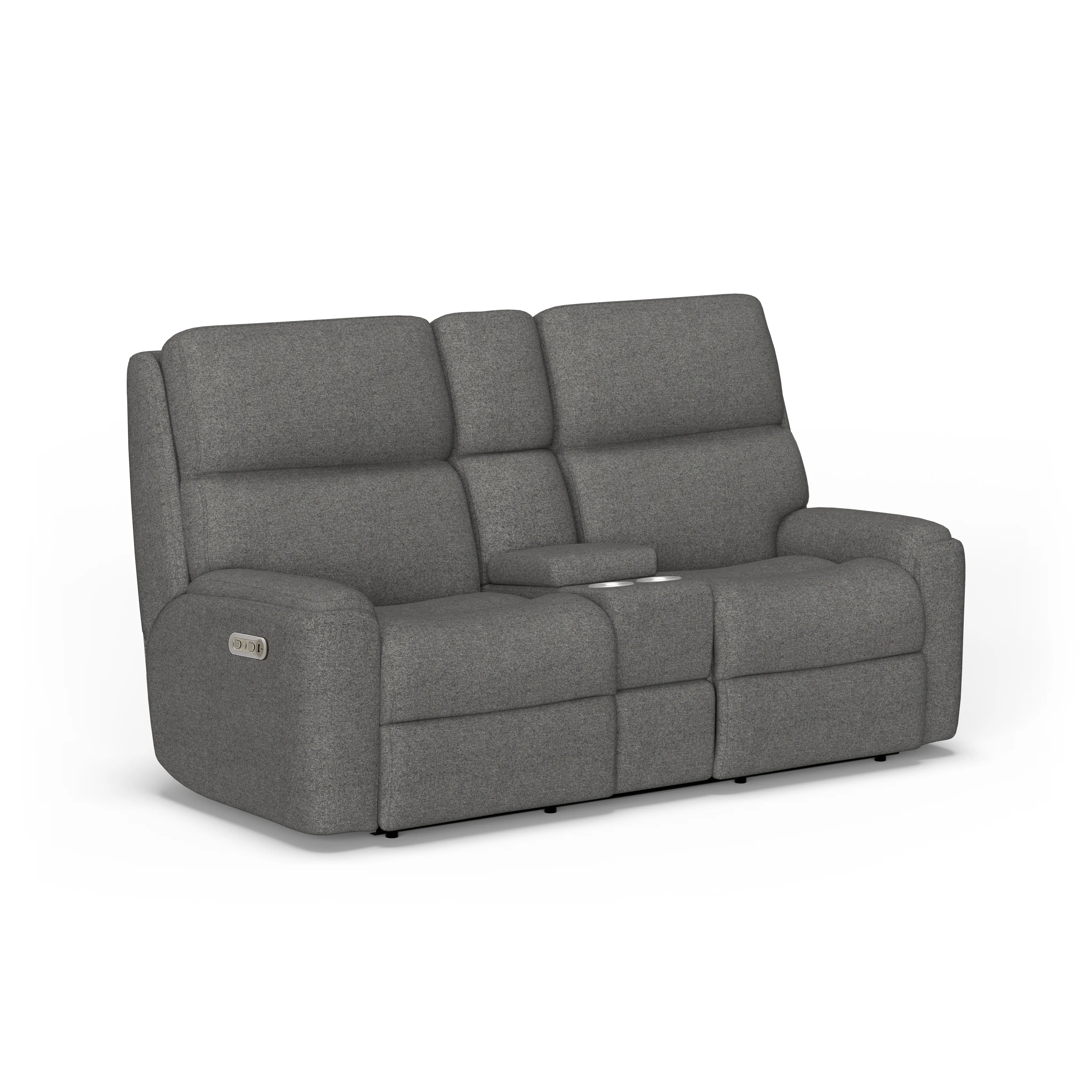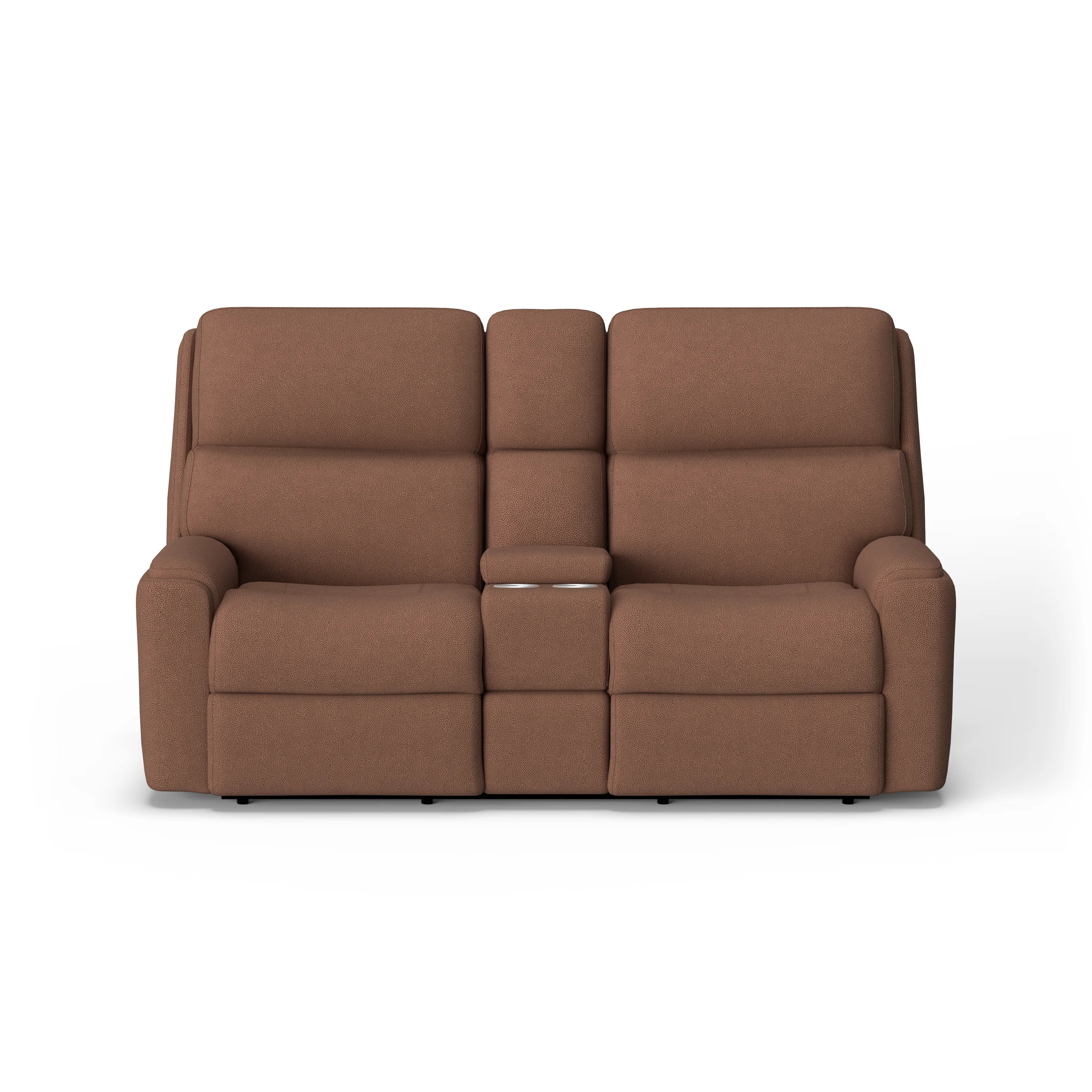 Whether you’re watching movies or playing games, the Rio Power Reclining Loveseat with Console makes it easy to recline and puts items like remotes and beverages close at hand. The spacious center console includes storage for glasses, magazines and other personal items and features two cup holders. Easy-to-access power controls with built-in USB charging ports in both arms allow you to independently adjust the headrest and recline, dialing in the right level of comfort for both people sitting. Designed to enhance your well-being, Rio has divided back cushions that provide comprehensive back support. Inset padded armrests take pressure off your forearms, while our patented Flexsteel DualFlex Spring System™ provides firmness and flexibility.