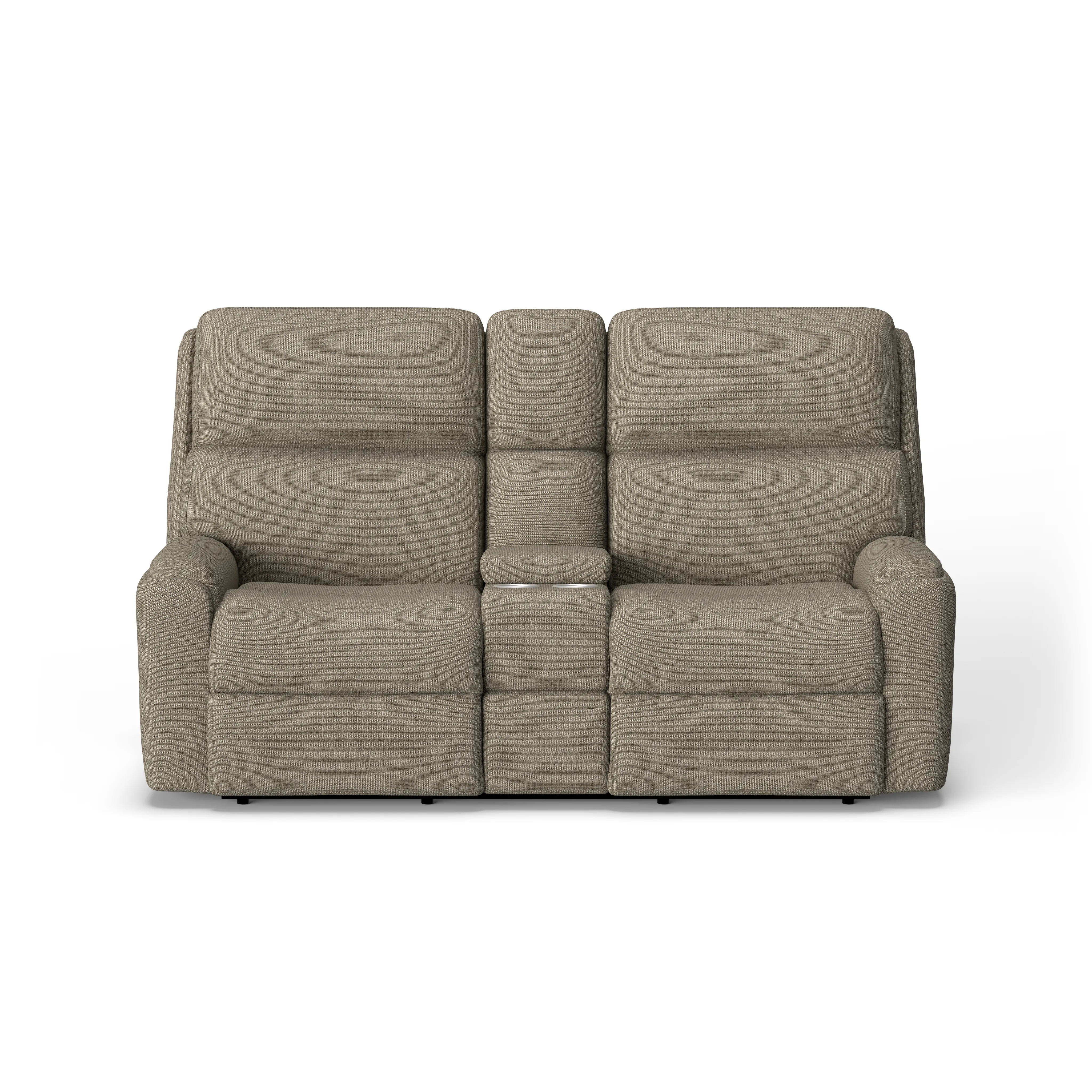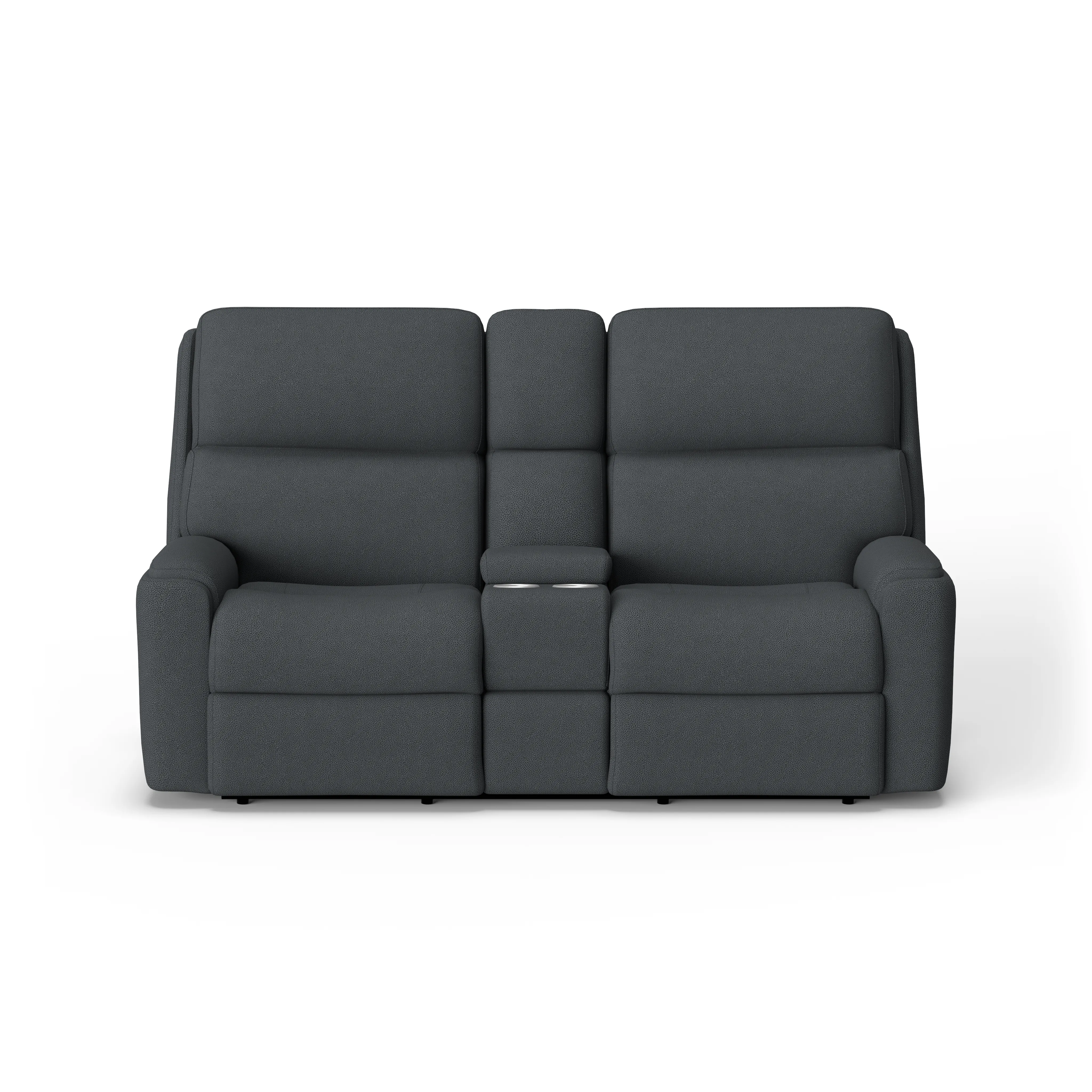 Relax and keep everything you need for streaming or gaming close at hand with the Rio Power Reclining Loveseat with Console. Using the power controls in either of the arms, you and the person you’re sitting with can easily recline. USB charging ports in the controls keep devices powered up and ready when you need them. A center storage console features cup holders and offers plenty of space to organize remotes, magazines and more. Comfort-enhancing design details include plush divided back cushions that cradle your neck, back and lower lumbar. Inset padded armrests take pressure off your forearms, while our patented Flexsteel DualFlex Spring System™ provides firmness and flexibility.