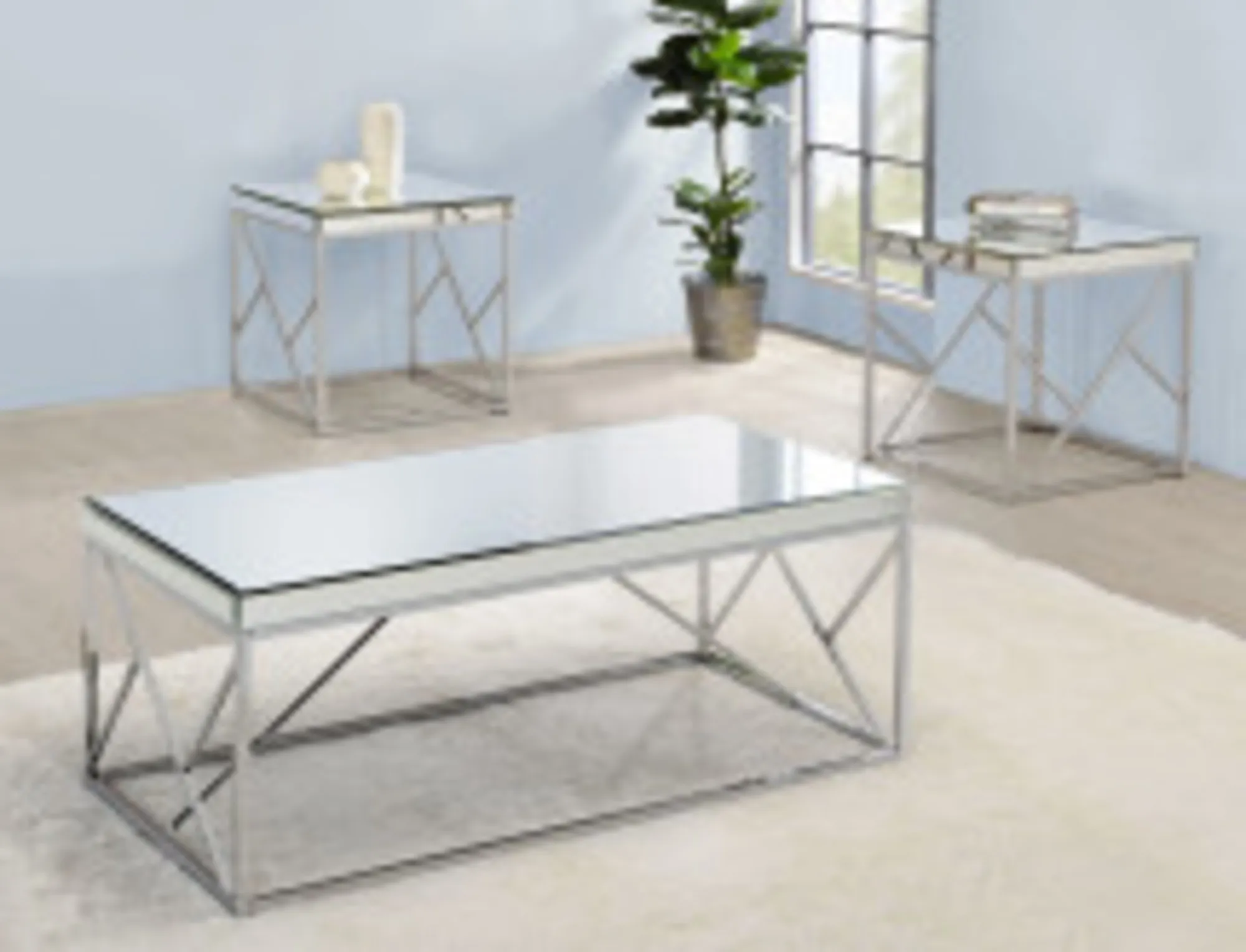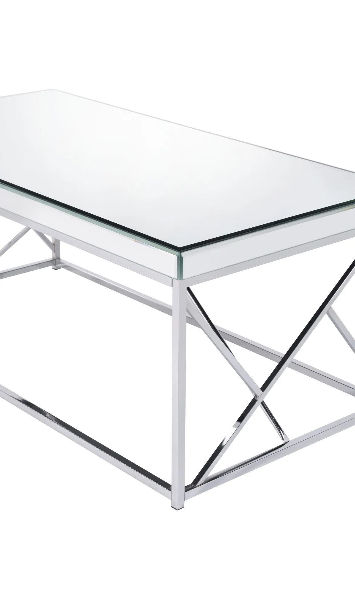 - Constructed of mirror tops and sides with iron base in a chrome finish