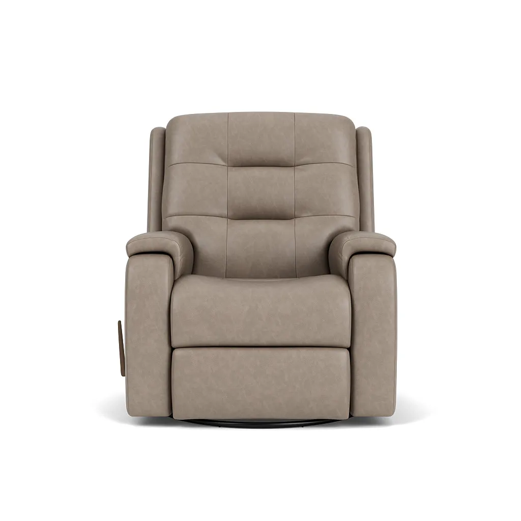 Stay comfy and enjoy a wide range of motion as you sit with the Arlo Swivel Gliding Recliner, available in our premium leather upholstery. Keep tabs on what’s happening in the room with a swivel mechanism that allows you to rotate from side to side. The gentle gliding motion is great for soothing babies or helping yourself fall asleep. Additional wellness-enhancing design features include a distinctive, triple-divide back cushion that cradles your head, neck, and lower back. You’ll sink into the comfort of a contoured seat with chaise pad, which supports the legs and offers a tailored look. It’s all bolstered by our patented DualFlex Spring System™, which adds firmness and flexibility to the seat. Create a look that enhances your home by choosing from more than 50 leather or leather match for a luxurious look that’s easy to maintain.