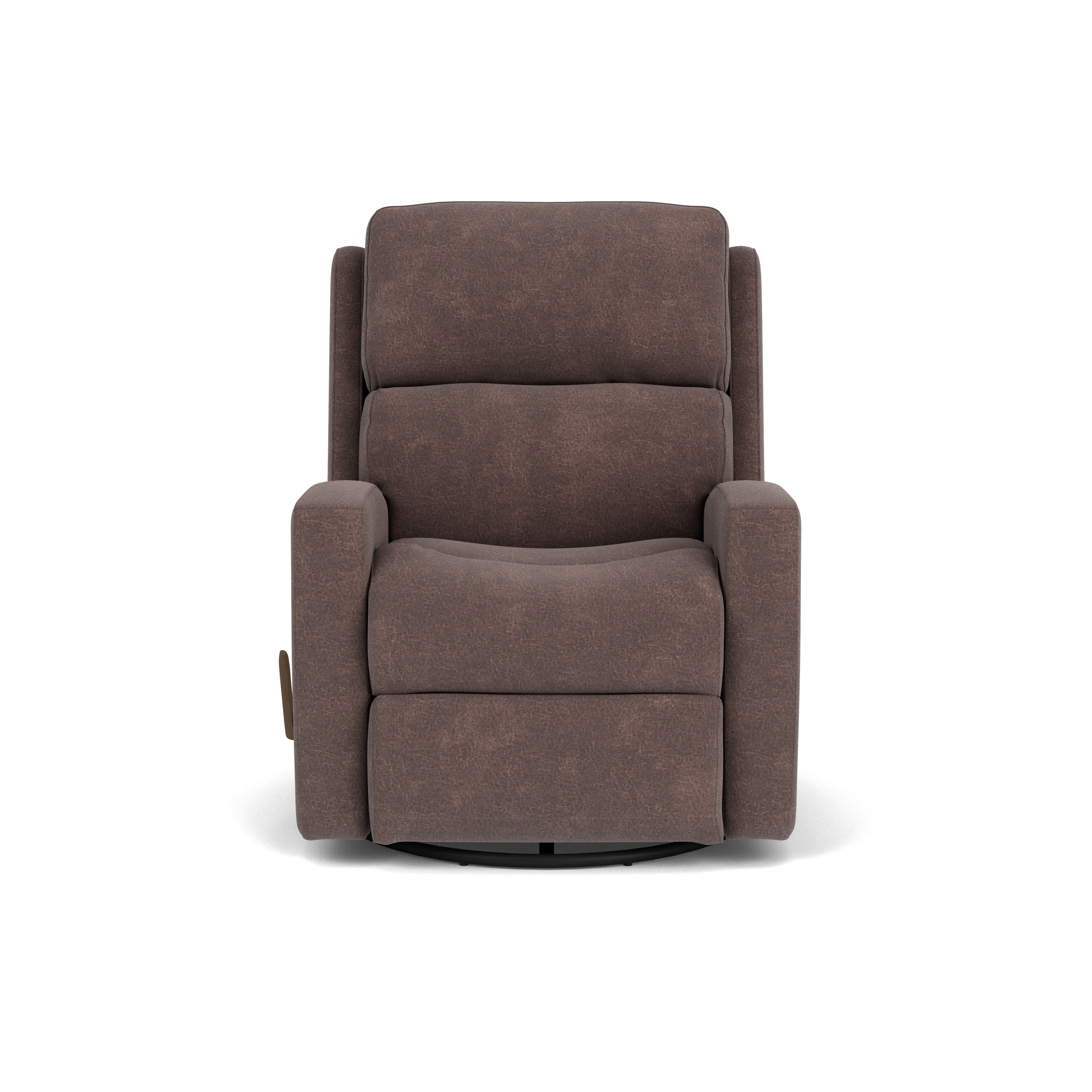 Contemporary-styled comfort invites all-day lounging with the Catalina swivel gliding recliner. Easily swivel around and unwind with its gentle gliding motion and recline function that can be adjusted with the handle-activated system in the arm. Catalina’s deep-set back wings and sloped arms offer a sleek aesthetic for living spaces, while a contoured seat, fully padded footrest and divided back cushion provide support for complete relaxation.