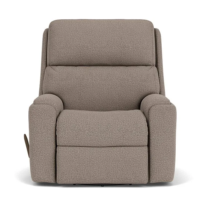 Enjoy a wide range of motion as you sit with the Rio Swivel Gliding Recliner. Check out what’s happening in the room with a swivel mechanism that allows you to easily rotate from side to side. While in the seated position, a gentle gliding motion is great for soothing babies or helping yourself fall asleep. When you’re ready to recline, simply pull the convenient handle on the side. Additional ergonomic design features include plush divided back cushions that support your neck, back and lower lumbar, and inset padded armrests that take pressure off your forearms. The Rio Swivel Gliding Recliner is bolstered by our patented Flexsteel DualFlex Spring System™, which adds firmness and flexibility to the seat.