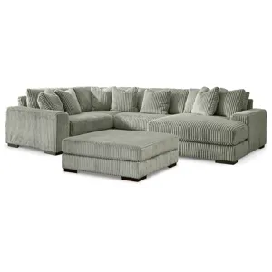 Plush and posh. Showcase your eye for on-trend texture with the statement-making cord upholstery of this sectional with chaise. Its stunningly soft fabric entices in a warm neutral hue, complementing contemporary color palettes. Sink into the cushions and plan to stay a while—this cozy living room centerpiece highlights your high-end approach to comfort and style.