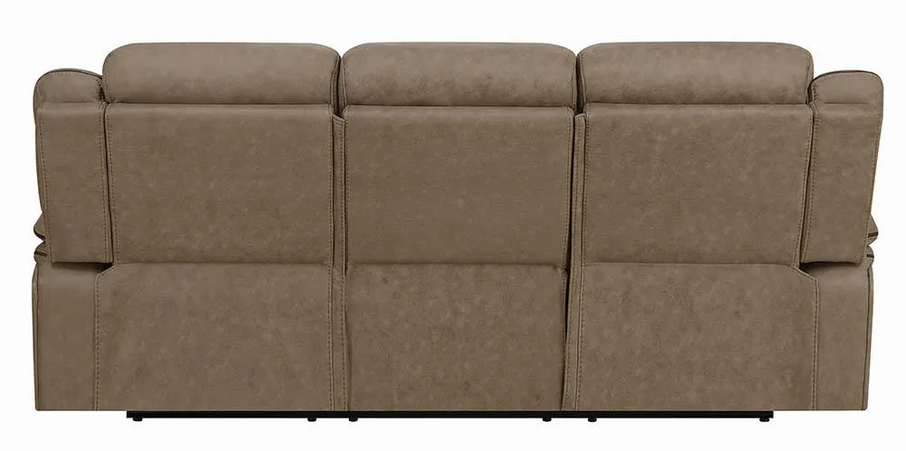 Higgins Pillow Top Arm Upholstered Motion Sofa Tan by Coaster Furniture