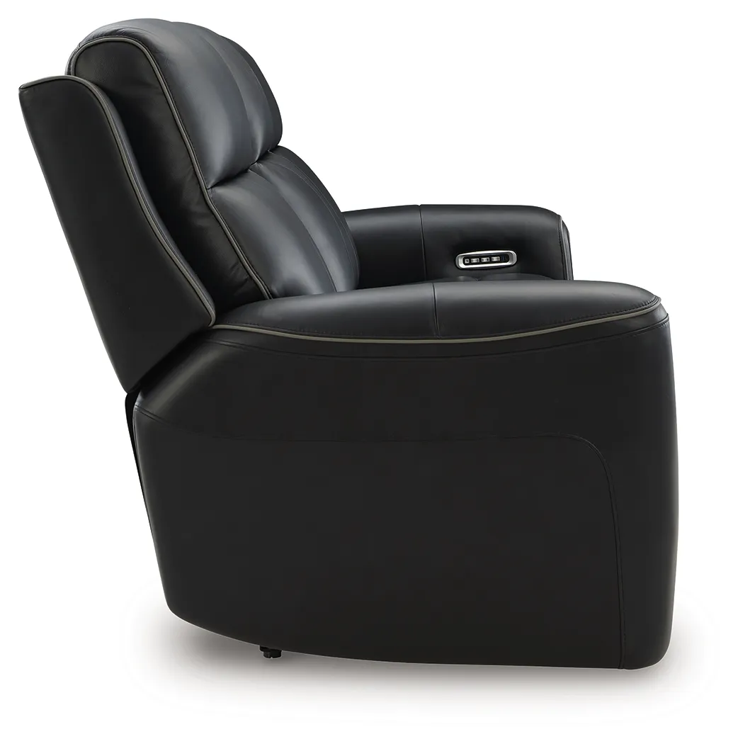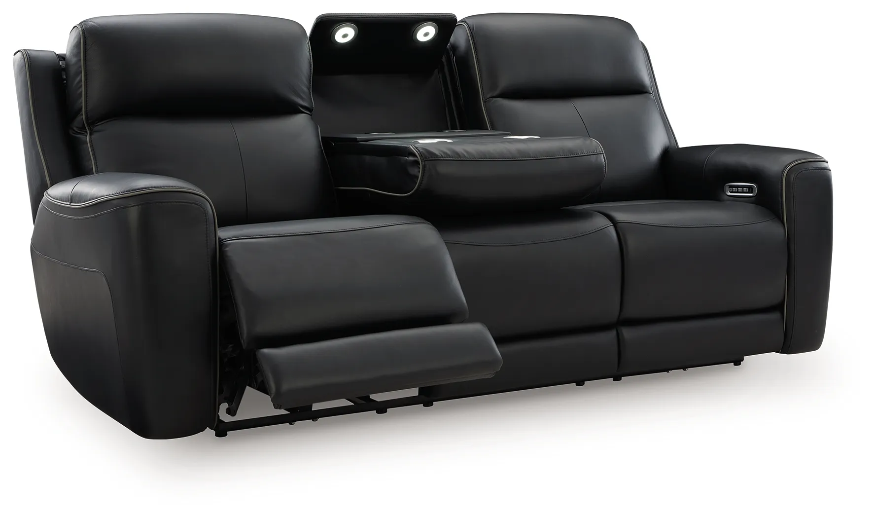 Relax like never before. This power reclining sofa offers the look and feel of leather at a comfortably affordable faux leather price. With chic tailoring and stylish welting, it creates a sophisticated presence and makes a lasting impression. When you're ready to be pampered, indulge in the adjustable headrests, heated seats and air massage, all at the touch of a button. And did we mention the sofa's drop-down table with LED lights and dual cup holders? Chill time just got a whole lot sweeter.