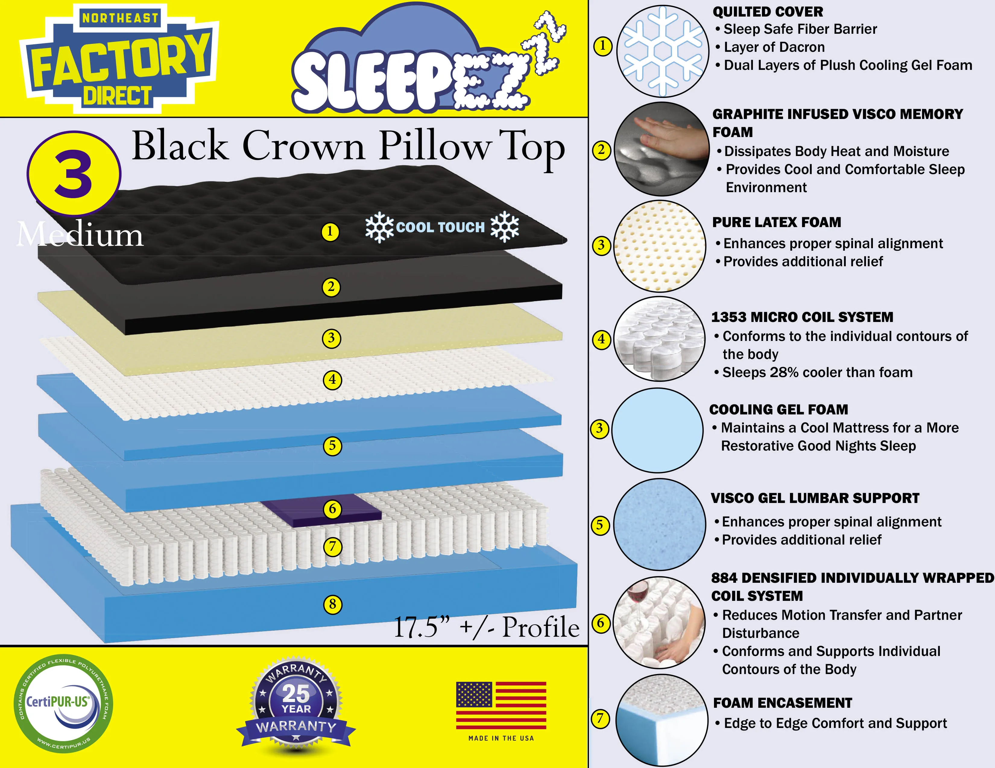 The Black Crown Pillowtop Mattress by SLEEP EZzz by NEFD may be available at Northeast Factory Direct in the