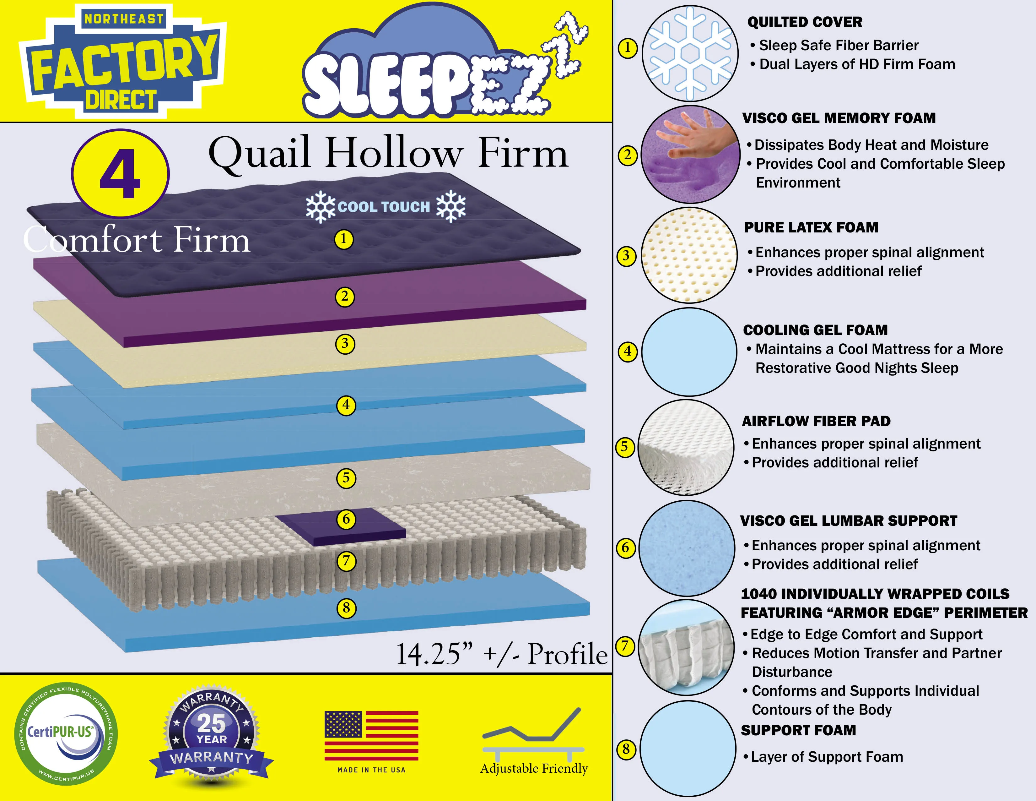 At the core of the Quail Hollow Firm is a 1040 individually wrapped coil system featuring an Armor Edge® perimeter, engineered to: