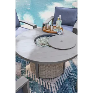 High style crafted for low-maintenance living. Turn your outdoor space into a sweet retreat with this fire pit table. The casually cool piece entices with easy-breezy gray resin wicker over an all-weather aluminum frame, for an upscale aesthetic that’s downright durable. A stainless steel burner with glass beads adds a captivating element sure to wow. Gather round for mealtime, morning coffee chats or cocktails in the great outdoors.